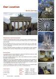 Our Location Berlin, Germany ¡Bienvenidos a Latin America World! Our ofce is strategically located in Berlin, Germany’s capital, a pulsating Metropolis, a city of contradictions that fascinates every visitor with its history, arts, culture, tradition and modernity. Berlin’s geographical location in the heart of Central Europe and its excellent infra- structure are the main assets that make Berlin a prime venue for trade fairs and confer- ences (e. g.: ITB Berlin). By being settled and operating from Berlin, we reach logistically our clients anywhere in Europe and the rest of the world; likewise, we are also easily accessible to them. Business Hours Our regular business hours are Monday to Friday from 10:00 hours (10:00 a.m.) until 18:00 hours (6:00 p.m.) Central European Time (CET). We are also available 24 hours a day, 7 days a week and all year round at our website www.latin-america-world.com. Although we are closed on weekends, holidays or at night, we are also available for individual or group appointments, events and special operational activities. Out of normal working hours, our partners and clients can always leave a message or request on our answering machine or send us a fax or an e-mail. As for our travelling clients, besides the regular working hours, we are reachable under specifc numbers provided in their travel contact and information kit. Postal Address Telephone + 49 (0) 30 - 8871 3984 Telefax + 49 (0) 30 - 8872 9877 P. O. Box 150875 Fax-to-Mail + 49 (0) 321 - 2131 9758 D-10670 Berlin E-Mail info@latin-america-world.com Germany Website www.latin-america-world.com 4 Latin America World • Company Profle